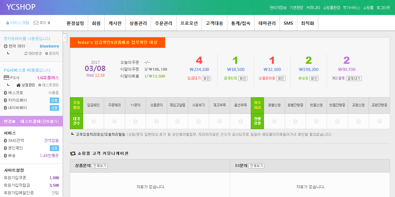 영카트5 관리자모드를 임대몰이나 독립몰 같은 고도몰이나 카페24몰 같이