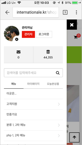 1차 메뉴는 아래의 예처럼 php 파일을 만들어 적용했습니다.