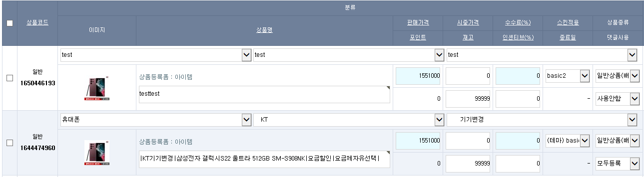 분류관리 에서 스킨을 변경시 적용이 되지않던 문제를 찾다 보니 상품마다