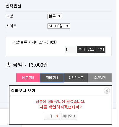 궁금한게 있는데 장바구니 클릭하고 예를 눌러서 들어갔을시에