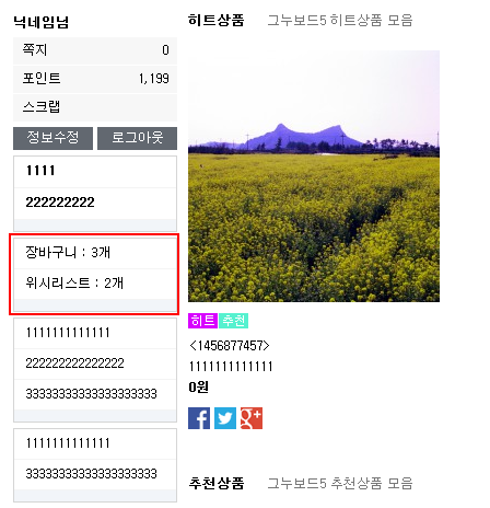 영카트 기본 상태에서 좌측 메뉴를 보면 장바구니와 위시리스트 부분이 목록형으로 출력이 되는데요.