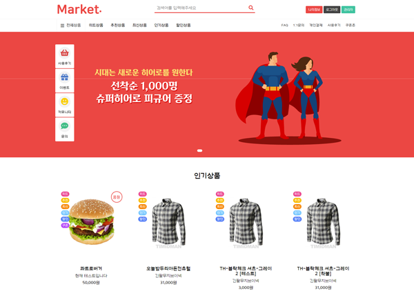 메인 왼쪽에 바로가기 버튼과 푸터의 SNS는 사용자가 직접 원하는 링크를 다시면 됩니다.