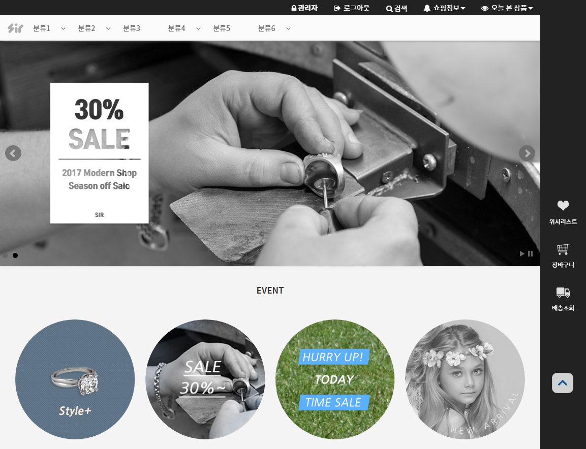 - 테마미리보기 : http://theme.sir.kr/youngcart5/demo/modernshop2