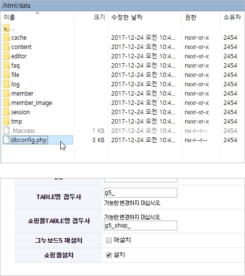 최종 또는 같은 버전의 그누보드가 설치되어있는지 먼저 확인하세요.
