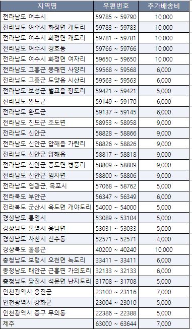 영카트 5.3 추가배송비 sql 파일, g5_shop_sendcost