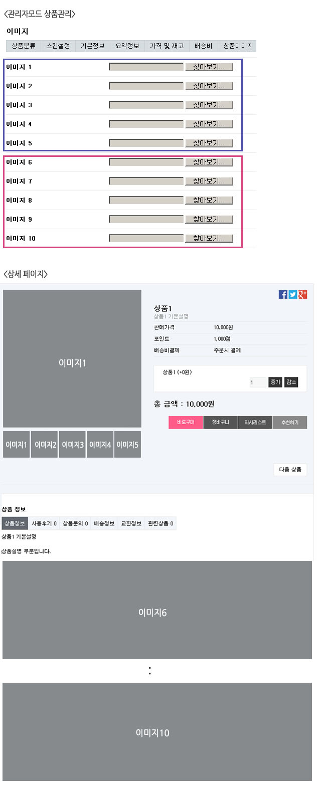 상품이미지 10개 중에서 이미지1~5는 기존 용도로 사용하고 이미지6~10을 상품설명 이미지로 사용하는 것입니다.