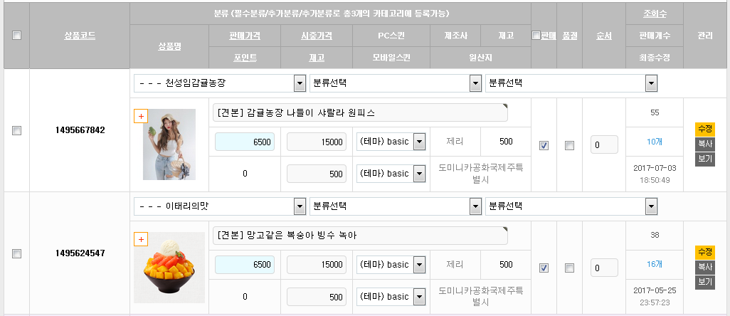 - 주의해서 상품목록의 적당한 위치에 추가하시면 됩니다