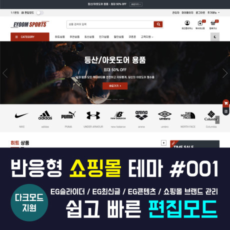 기존 구매(2022년 8월 29일 이전)하여 이용중이신 분들은 기존 버전(1.8.0)과는 달리, 현재 새 버전(2.*.*)은 완전히 새롭게 디자인 및 기능이 업그레이드 되었으니 참고하시기 바랍니다. (영카트 최신버전으로 새로 설치후 테마 적용 하시길 권장합니다.)