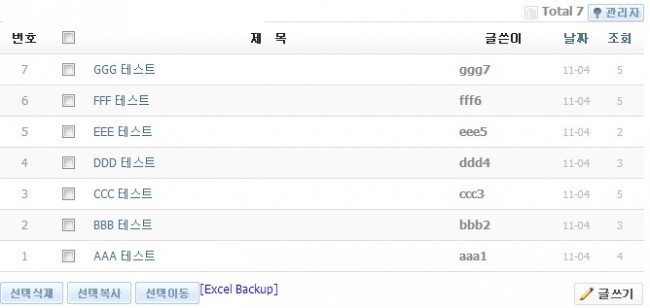 현재 엑셀로 관리하고 있던 각종 데이타를 게시판에 올려 보고 싶어서 만들어 봤습니다.