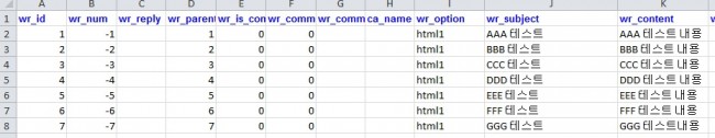 엑셀파일로 관리하던 데이타를 그누보드 게시판에 올리기 정보