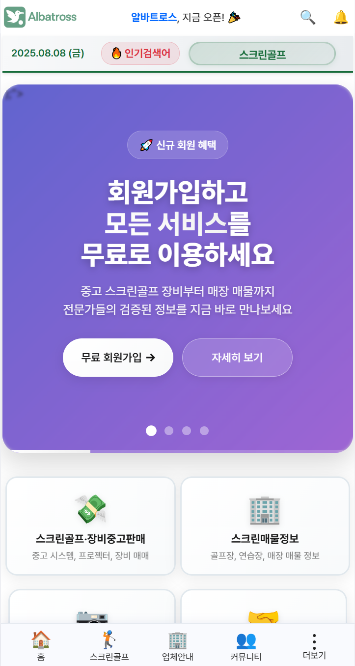 안녕하세요. 스크린골프 중고거래 플랫폼 '알바트로스.kr'을 그누보드5와 이윰빌더로 제작했습니다.