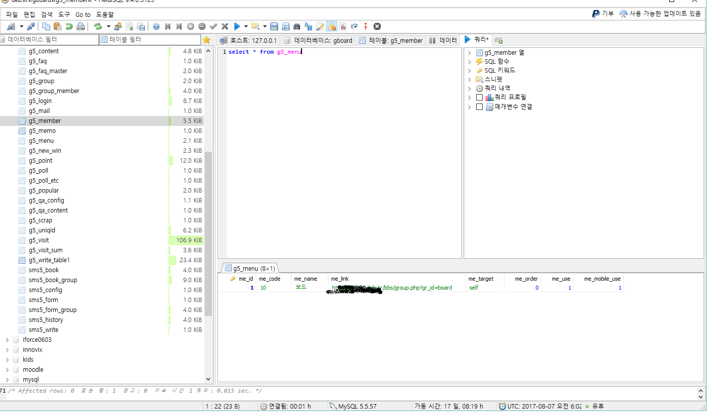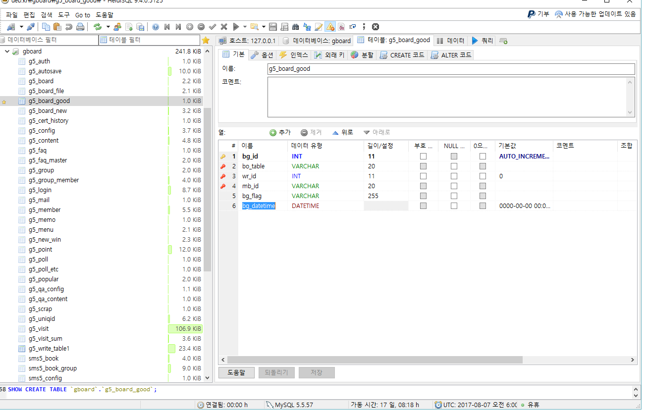 저도 애용하는 툴입니다. 혹시 MySQL 서버 캐릭터셋이 euc-kr 인 경우 한글이 정상적으로 보이지 않는데.. 해결방법을 아시는지요?
