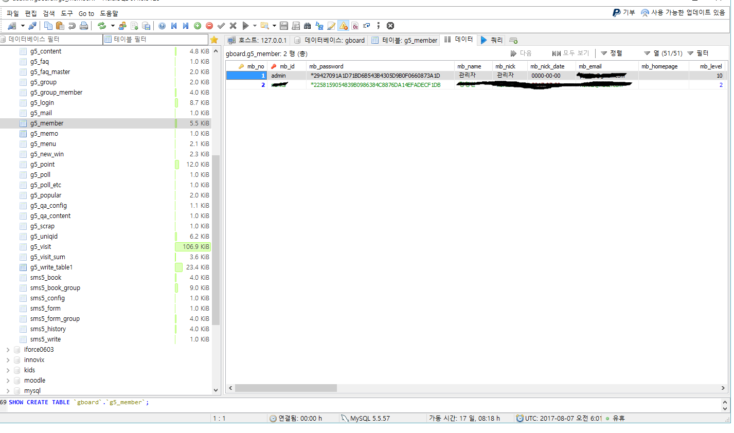ㅎㅎ저도 저걸 사용해봤는데, 그래도 전 myadmin이 편하긴 하더라구요ㅎㅎ