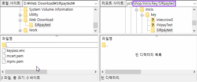 • 업로드경로: shop/inicis/key/SIRpaytest/