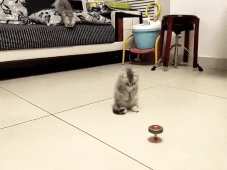 팽이가 돌아가는걸 보는 아기 고양이 정보